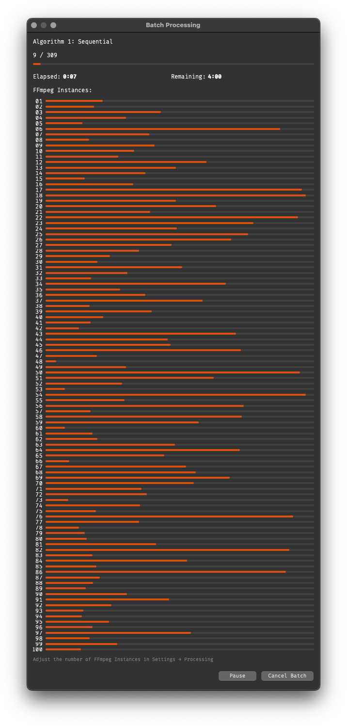 Before explaining FFAB's batch algorithms, be aware that FFAB can also be configured to launch as many instances of FFmpeg that your CPU will handle!